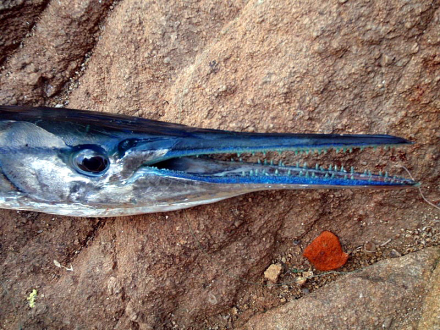 - Det er ikke usædvanligt at se hornfisk hoppe op af vandet, som regel når de er truet af et rovdyr, siger han.