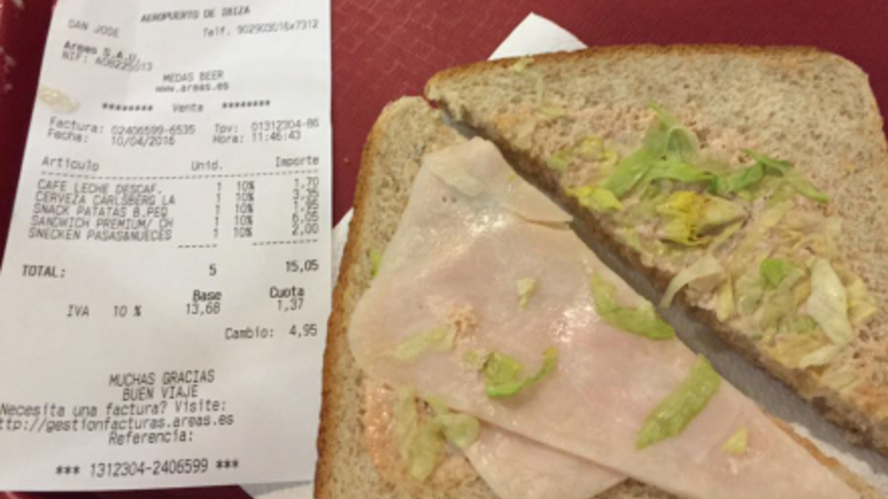 Det er generelt dyrt at købe mad i lufthavne, men man forventer trods alt at få lidt for pengene. Det kan Ibiza ikke prale med.