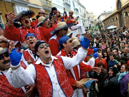 Her er der masser af sjove udklædninger og berømte 'Chirigotas', der er en slags satiriske sange, der gør grin med politikere og aktuelle begivenheder i samfundet.