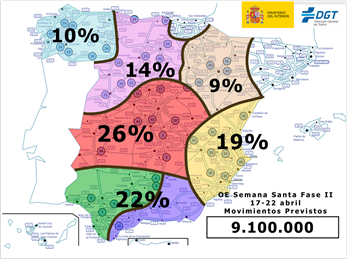 Mellem den 17. og 22. april vil der blive foretaget 9,1 millioner køreture, vurderer DGT.