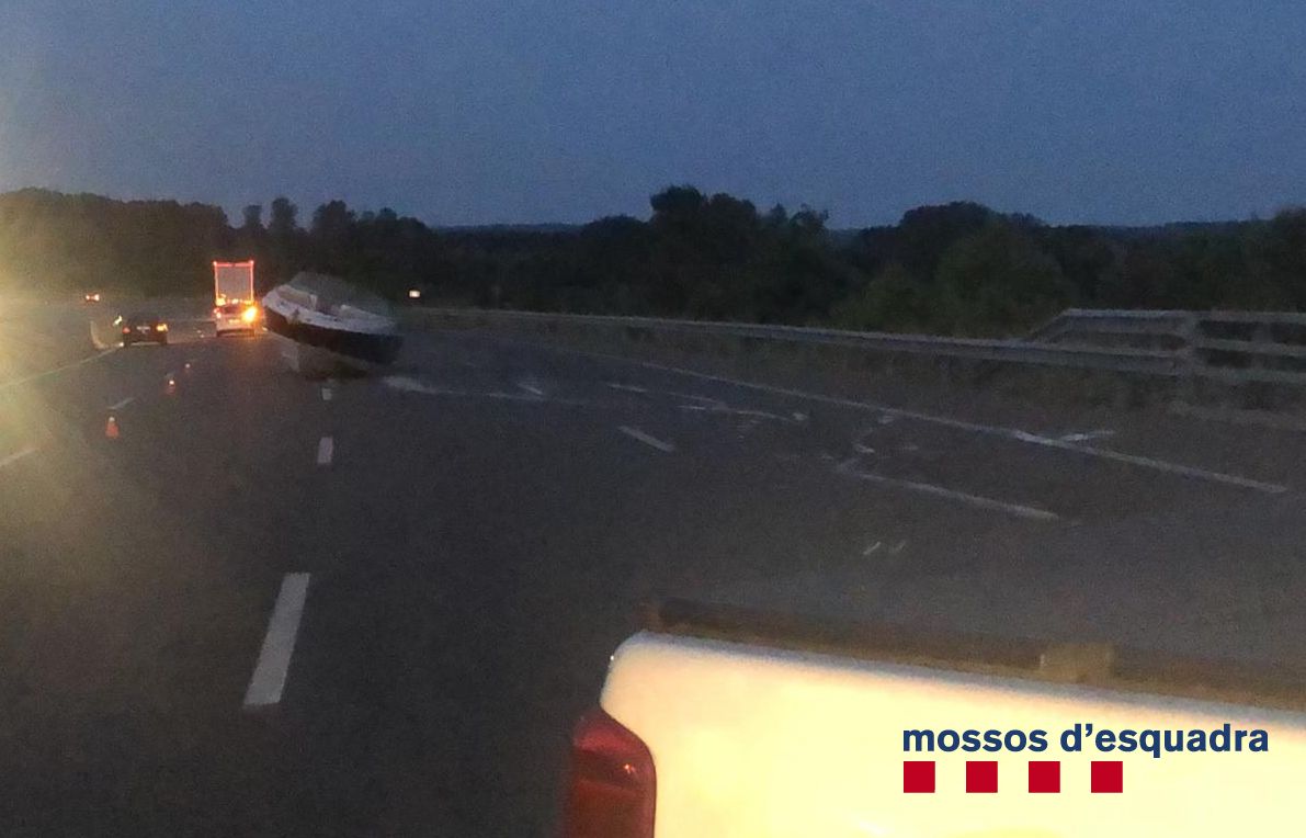 Bilist overtrådte et væld af regler, da han mistede en båd midt på motorvejen i Sant Julià de Ramis, Girona.