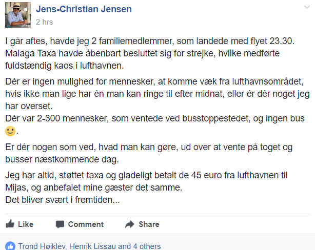 TRAFIK: Midt i højsæson har størstedelen af taxichaufførerne i Málaga nedlagt arbejdet. Det forventes, at flere kystbyer følger trop.