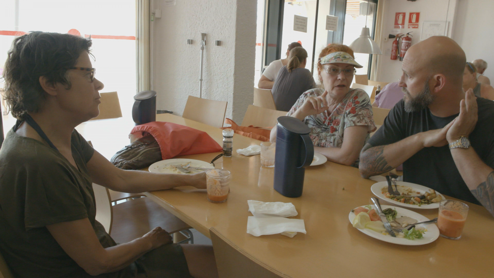 Castberg snakker med nogle af patienterne om maden (foto: TV3)