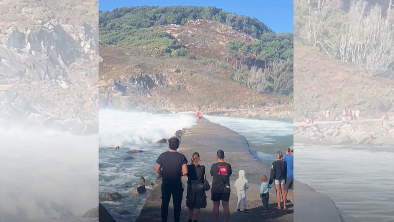 I sidste uge skabte voldsomme bølger livsfarlige forhold ved broen i Rodas, Galicien, men nogle mennesker synes at mene, at advarsler kun gælder andre, og det havde nær kostet menneskeliv tirsdag.