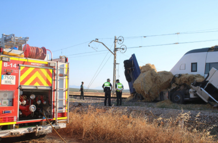 Nær den lille by Fuente de Piedra var en lastvogn i gang med at hente halmballer fra områdets landmænd, da den skulle krydse en bomløs togoverkørsel. Her gik det helt galt.