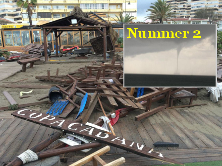 Bygninger og inventar i Churriana, Palayamar og Los Álamos blev kraftigt beskadiget i tornado. En populær strandbar blev jævnet med jorden, og der skete skader på flere biler og bygninger.