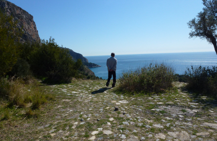 Til gengæld er udsigten betagende flot, og vi kan se helt til Motril mod øst og til bjerget ved Málagas lufthavn mod vest. Bag os ligger adskillige bjergkæder og under os skyller det blå Middelhav ind over kysten. Meget flottere bliver det vist ikke ret mange andre steder i verden.