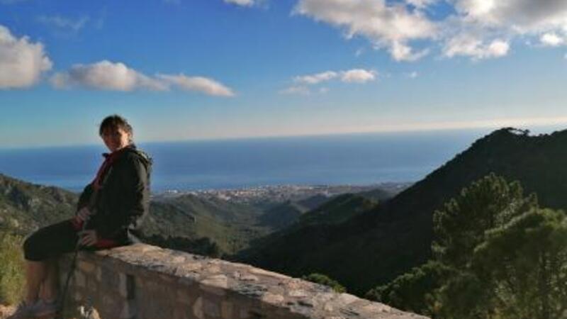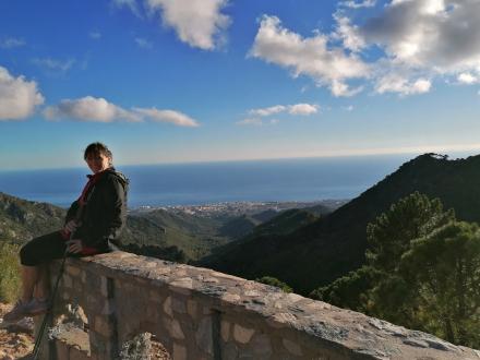Efter en kort pause går vi tilbage gennem fyrretræerne op til udsigtspunktet El Corzo, hvorfra der er en forrygende udsigt over Ojén, Mijas og Málaga.