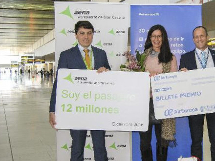 Eva Tendero Corredor (foto, red.) blev passager nummer tolv millioner, da hun hoppede på et Air Europa-fly til Madrid.