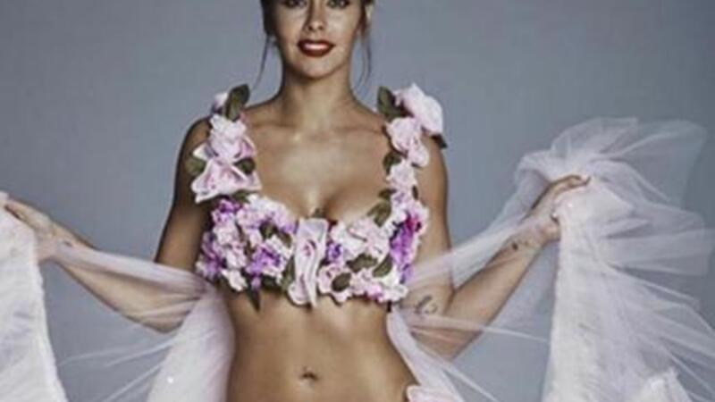 Nytårsaften valgte den 30-årige flotte kvinde at iklæde sig en bikini i lyserøde og violette farver med blomsterdetaljer inspireret af et Yves Saint Laurent-design fra 1999.