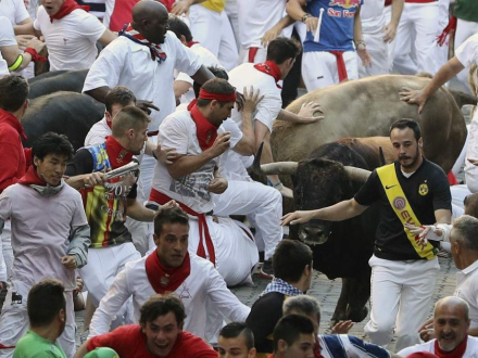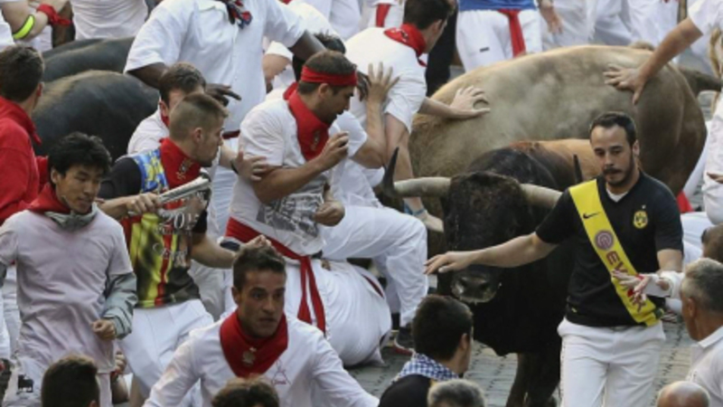 Cirka halvvejs under løbet faldt en række festivalgæster og blev løbet over af flere af tyrene. Det resulterede i, at fire personer skulle indlægges på hospitalet i Navarra, hvoraf tre var med hovedskader, to af dem kraniebrud, og en sidste med alvorlige skader til den ene arm.