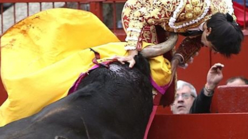 Perera blev stanget af hans første tyr den dag, som bogstaveligt talt overtog arenaen og smed ham ud. Han røg direkte på operationsbordet i tyrefægterarenaens skadestue, hvor han modtog akut kirurgi for at få lukket det åbne sår i maven.