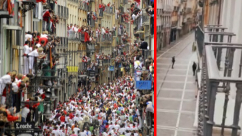Byrådet i Pamplona har sendt en fotograf på gaden og filmet de usædvanligt tomme gader og delt videoen på twitter med løftet om at være tilbage i 2021: