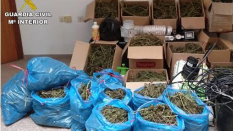 Guardia Civil vurderer, at der var for 150.000 euro stoffer i huset, og det derfor på ingen måde kan regnes for at være til eget forbrug. I alt beslaglagde politiet 34 kilo tørret marihuana, vægte, gødning, potter samt et vandingsanlæg.