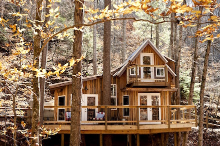 For eksempel kan man for godt 170 euro per nat leje sig ind i et charmerende træhus i North Carolina: