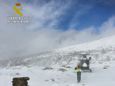 Redningshelikopteren lander nær toppen af Peñalara (FOTO: Guardia Civil)