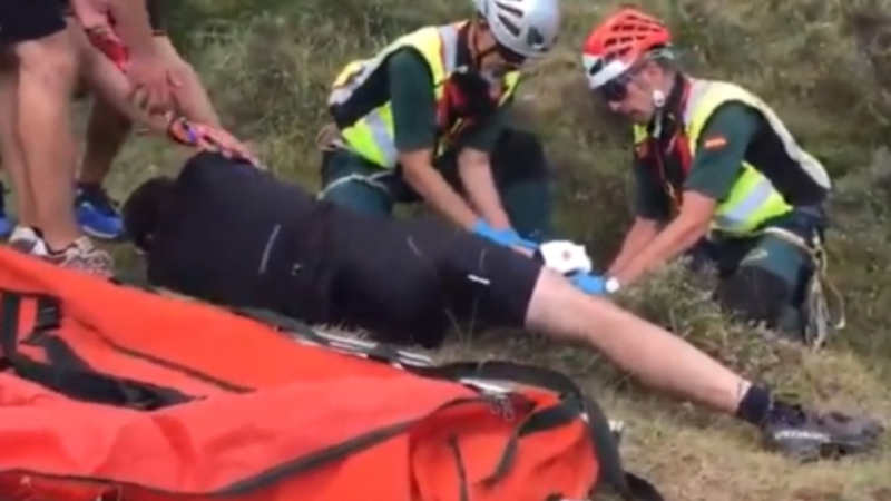 Hans fod hang ikke decideret og dinglede, men den sad helt skævt, og der var et åbent brud på skinnebenet. "Det var en alvorlig situation", siger Miguel Ángel Sáez, talsmand for Guardia Civil i La Rioja.