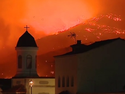 Her ser man tydeligt, hvordan blæsten får ilden til at brede sig: