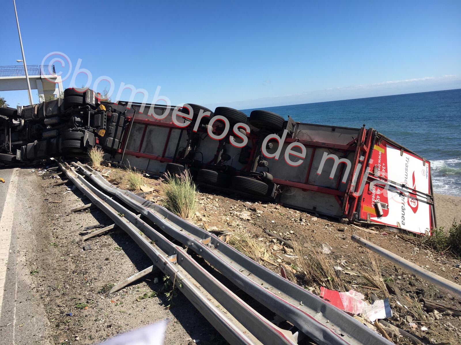 I går kørte en lastbil af vejen ved La Cala de Mijas, og lastbilchaufføreren måtte skæres fri efter at være blevet fanget i førerhuset.