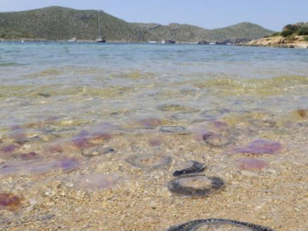 Et perfekt miks af vind, strøm og temperaturer gør, at der pludselig var rigtig mange i havet ved Solkysten lige fra Málaga og til Gibraltar. Adskillige spanske og udenlandske turister har måttet søge lægehjælp efter at have været i nærkontakt med de små gopler.