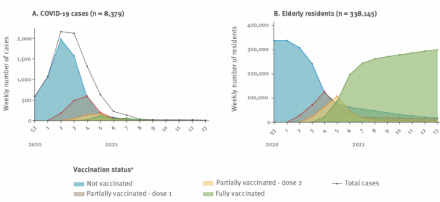 De blå var ikke vaccineret, grå og gul delvis, mens de grønne var fuldt vaccineret