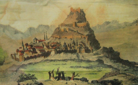 Maleri af fæstningen og slottet i Morella - som den formentlig har set ud