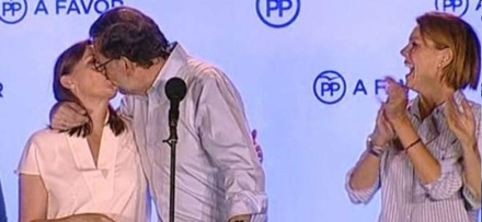 Fru Rajoy får et smækkys af gemalen på podiet