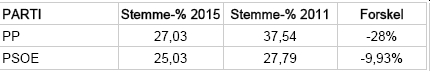 POLITIK: PP mister sine absolutte flertal, PSOE går tilbage - Podemos og Ciudadanos stormer frem.