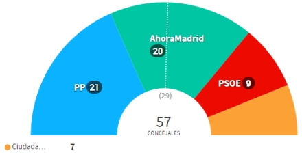 Efter 24 år med flertal i Madrid Kommune, må partiet vige posten. PP, med Esperanza Aguirre, i spidsen går fra 31 til 21 pladser i byrådet.