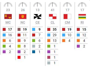 Murcia, Navarra, Extremadura, Castilla y León, Castilla la Mancha og La Rioja