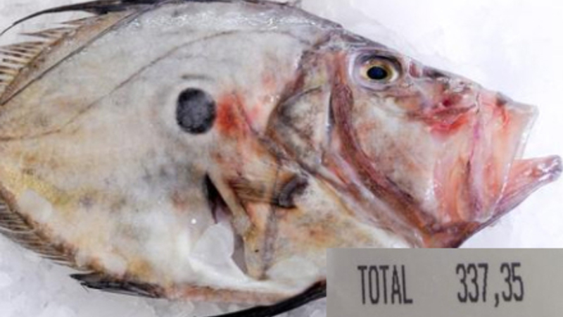 Parret spurgte ikke til prisen, og det fortryder de nok lidt nu. Det viste sig, at fisken var prissat til 153 euro pr kilo, vel at mærke med hoved og ben.