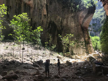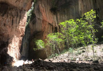 Efter at have gået de 261 meter nedad havner vi i et semi-udtørret flodleje, som vi følger et par hundrede meter “mod strømmen”.