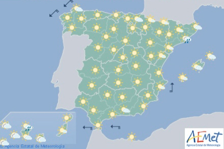 Perioder med klart vejr i det nordøstlige Catalonien samt på Balearerne og de vestlige Kanariske Øer, uden vi dog kan udelukke lejlighedsvise og spredte byger - mest sandsynligt i højtliggende egne på De Kanariske Øer og på den catalanske kyst.