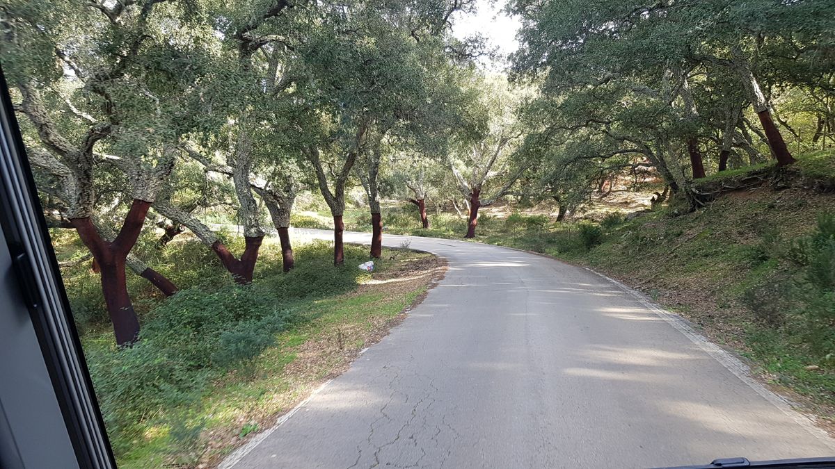 Turen fortsætter gennem Ubrique, videre ad A-375, hvor vi møder store områder med kork ege. Det har vi aldrig set før, så vi stopper op flere steder og må ud og gå imellem træerne og se på barken. Vi tjekker på nettet for oplysninger. Det er et tålmodigheds arbejde, at vente på at barken/korken på træerne bliver tyk nok til at kan skrælles.
