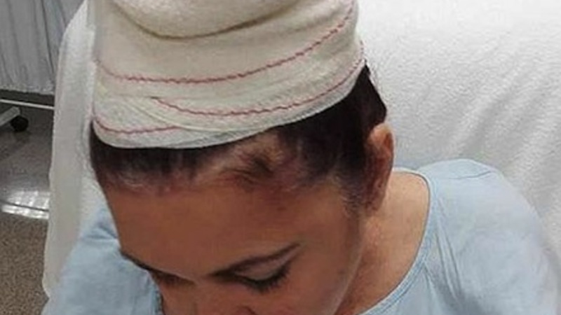 Kvinden blev ramt af hovedet. Heldigvis kom hverken hende eller datteren alvorligt til skade, men politiet beder alligevel offentligheden om hjælp.