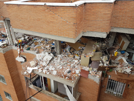 Bygningen, der blev ramt, ligger i Avenida de Pablo Neruda nummer 17, og den skal delvist rives ned, da eksplosionen forårsagede omfattende skader.