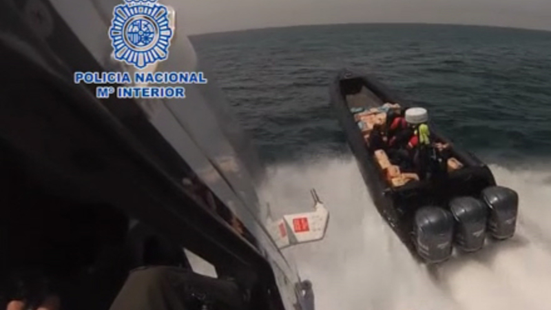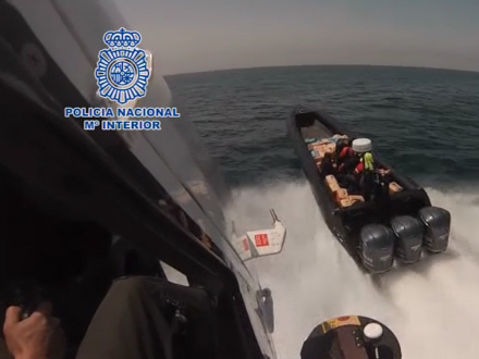 En af aktionerne blev optaget af et kamera på politiets båd, der eftersætter en af de lynhurtige speedbåde, der er på vej over Strædet fra Marocco til det spanske fastland, og det går dæleme stærkt.