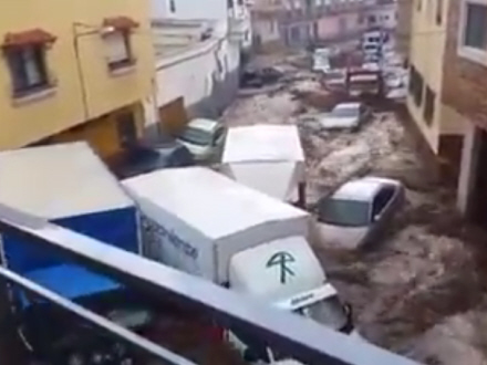 Der var også oversvømmelser i Valencia, Granada og Alicante og Almería, hvor det altså fortsætter i dag.