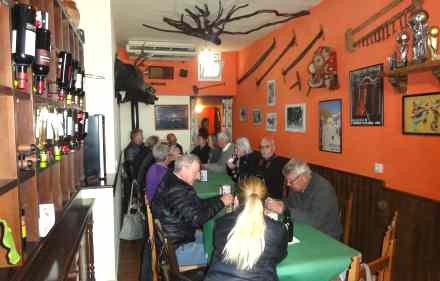 Vi får en rundvisning på stedet, ser en lille film inde i en gammel kirke om stedets historie og udvikling og så er der vinsmagning og lækre tapas. Der er ikke tale om en klat olie og noget tørt brød, men virkelige lækkerier i gastronomiklassen.