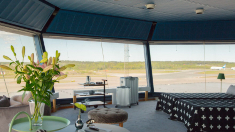 Det gamle kontroltårn i Arlanda Lufthavn i Stockholm er blevet gennemrenoveret, og der er blevet indrettet en lækker lejlighed i de specielle lokaler.