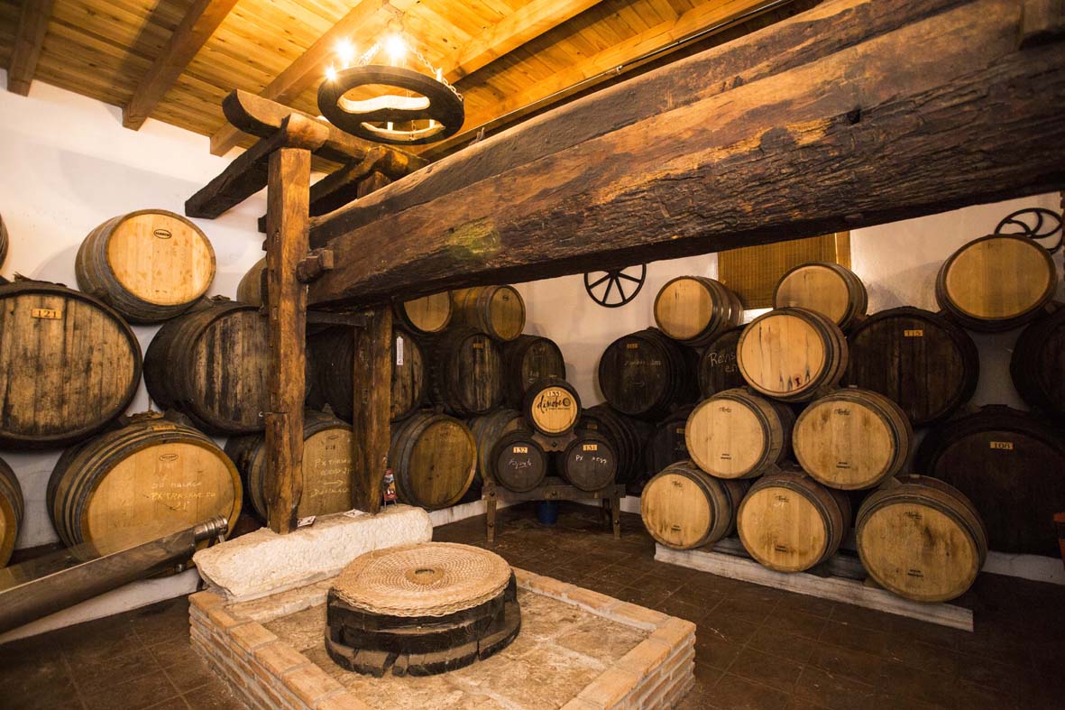 VI besøger også den gamle bodega med vinpresse, egefadstønder og et hav af redskaber, som dengang blev brugt til fremstilling af vin.