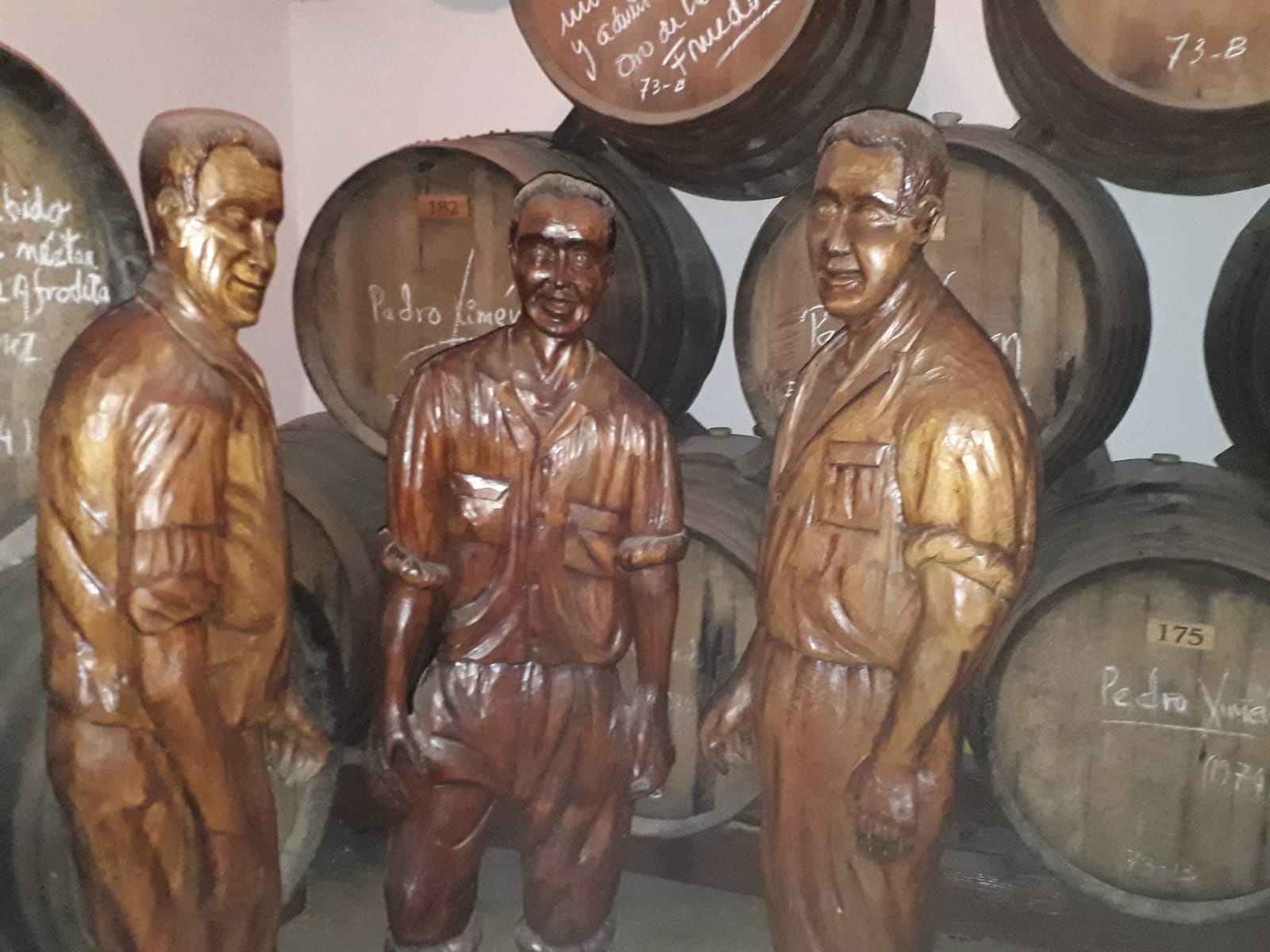 Her har vi nogle af de gamle tønder - og skulpturer af grundlæggerne