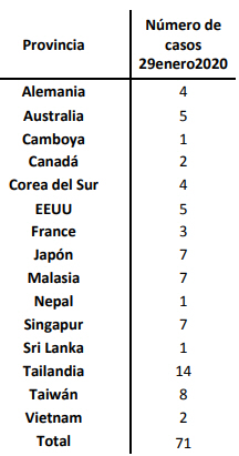 Smittede uden for Kina pr i går var i alt 71: