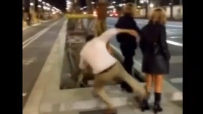Sjov aften i byen endte i vold mod en tilfældig kvinde på gaden. Kammeraten filmede overfaldet og oploadede den på de sociale netværk. Videoen blev delt med lynets hast, og han blev hurtigt identificeret. Han er nu anklaget for chikane og legemsbeskadigelse.