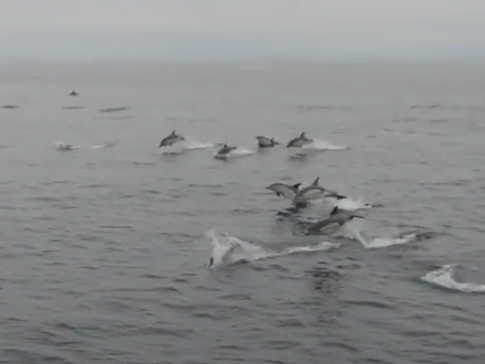 Delfinerne kommer hverken i dusinvis eller hundredvis, men altså i tusindvis. Normalt er det kun muligt at være heldig at se så mange delfiner på én gang ved Californien og Sydafrika.