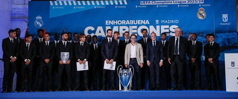 Efter familiefotoet fortsatte de med at besøge politikerne i Madrid Kommune. Først var det Isabel Díaz Ayuso, der modtog spillerne på en fyldt Puerta del Sol for at se mestrene. Efter at have underskrevet den officielle bog gik de ud på balkonen for at tale med fansene, hvor Antonio 'Loco' Rüdiger var den, der fik mest ros.