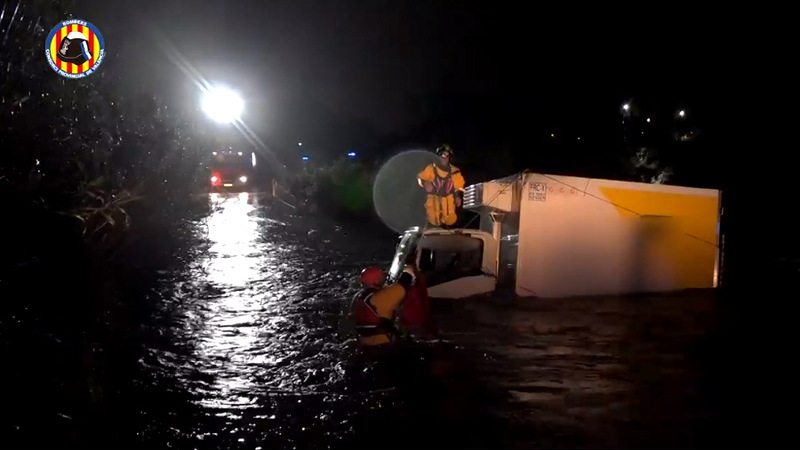 Her måtte brandvæsnet fra fra Torrent rykke ud til Quart de Poblet og redde to personer i en lastbil, der var blevet fanget i de voldsomme vandmasser i en kløft langs Mas del Jutge-vejen.