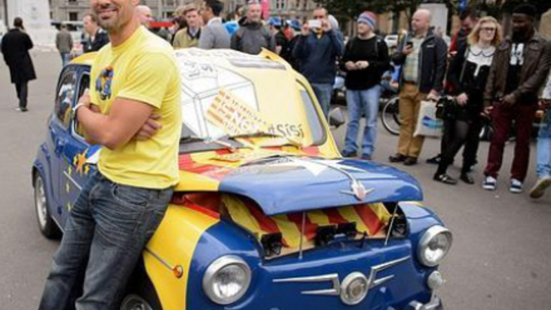 - Vi lever i et diktatur, og vi vil gerne stemme lige som i Skotland, sagde Pep Pladeveya til det franske nyhedsbureau AFP, da den lille catalanske bil ankom til George Pladsen
