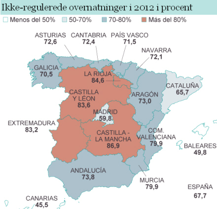 Andelen af ikke-regulerede overnatninger er overvældende (kilde: Anuario 2012 La Caixa)