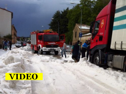 Indbyggerne i den lille landkommune Almazán i Soria spærrede i går eftermiddag øjnene noget op, da sommerlandet på ganske få minutter forvandlede sig til et hvidt vinterlandskab. Der faldt så meget hagl, at indbyggerne måtte havde skovl og spade frem.